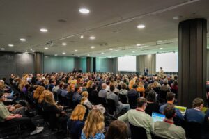 Publikum beim EBNS 2025: Unternehmens- und Politikvertreter:innen verfolgen die Diskussionen zu naturpositiven Geschäftsstrategien und den wirtschaftlichen Chancen von Biodiversität. | © European Union, 2025